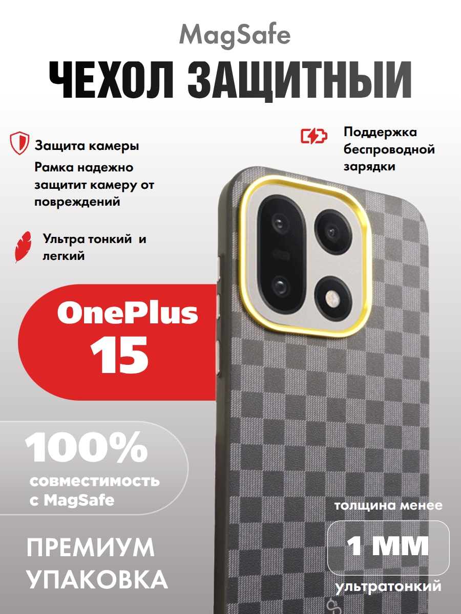 Защитный чехол для OnePlus 15 c MagSafe черно-серый шахматное плетение (Black-Gray)