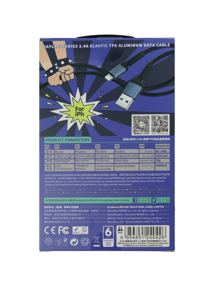 Кабель Remax RC-С008 USB-C to Lightning data cable (iPhone) 1m черный