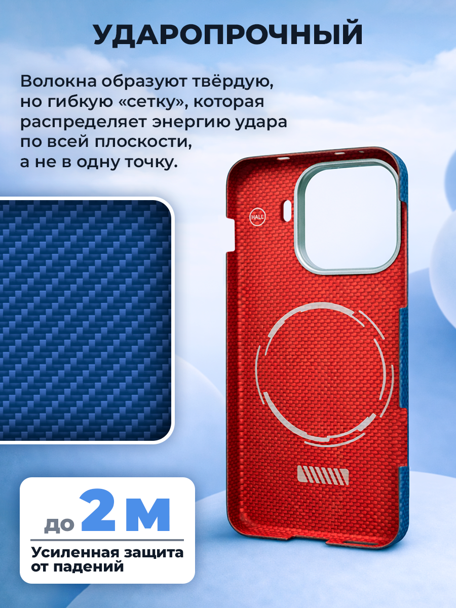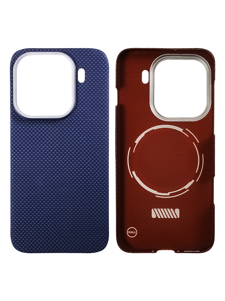 Карбоновый чехол для Oppo Find X9 Pro с MagSafe синий (Blue) шахматное плетение
