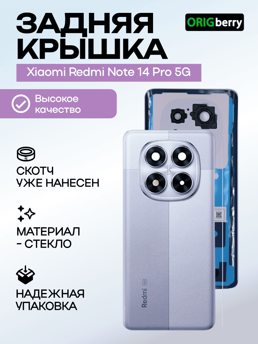 Задняя крышка для Xiaomi Redmi Note 14 Pro 5G фиолетовая (Aurora Purple) со стеклом камеры