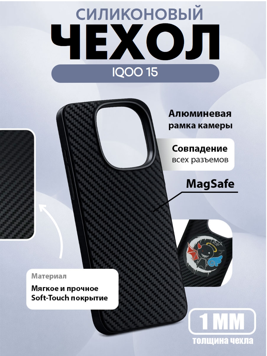 Защитный чехол для IQOO 15 органо-силиконовый под карбон c MagSafe черный (Black)