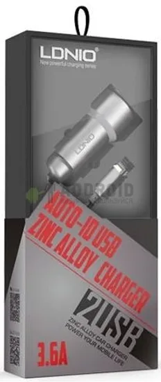 Автомобильное зарядное устройство Ldnio Zinc Alloy Car Charger 2 USB 3.6A + Lightning кабель (C302)